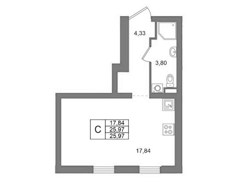 Квартира-студия на 12-ом этаже 25,97 кв.м