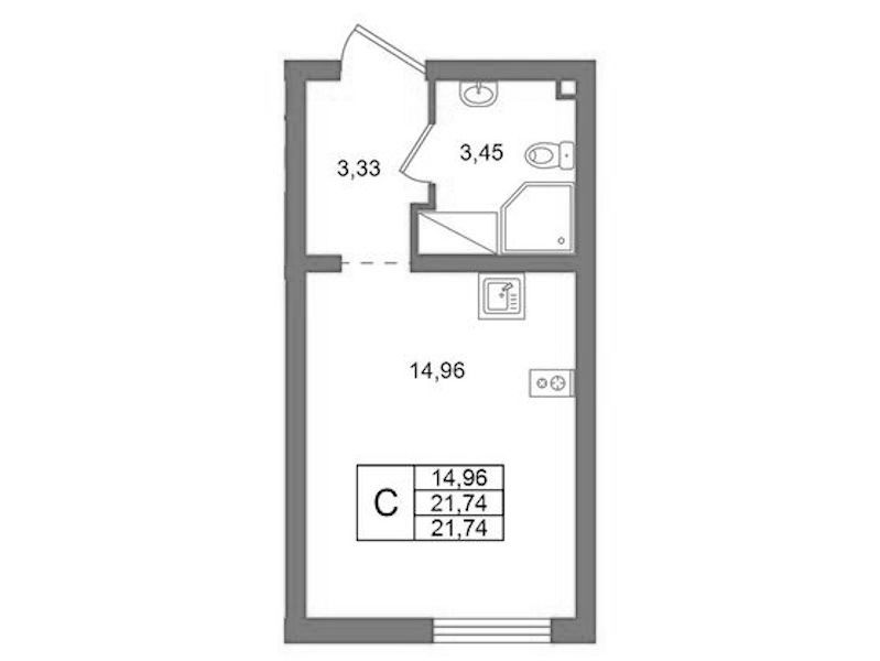 Квартира-студия на 14-ом этаже 21,74 кв.м