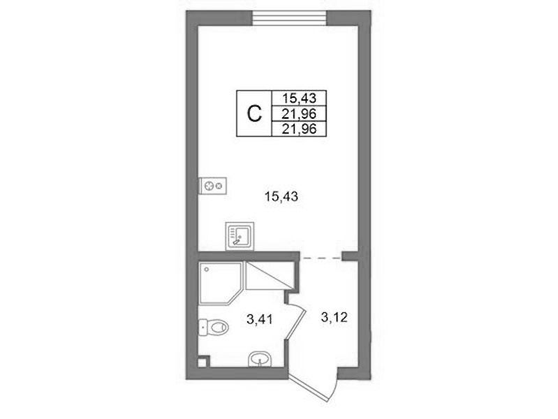 Квартира-студия на 14-ом этаже 21,96 кв.м