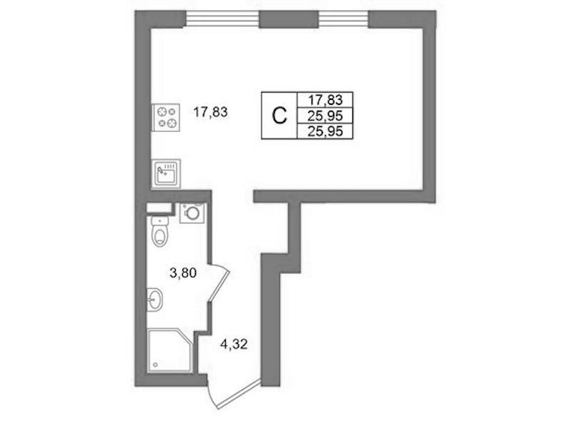 Квартира-студия на 12-ом этаже 25,95 кв.м