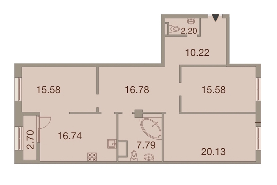 Трёхкомнатная квартира на 8-ом этаже 105,9 кв.м