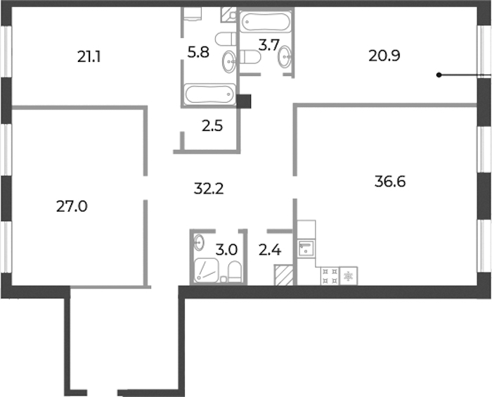 Трёхкомнатная квартира на 3-ем этаже 155,9 кв.м
