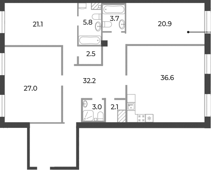 Трёхкомнатная квартира на 5-ом этаже 155,7 кв.м