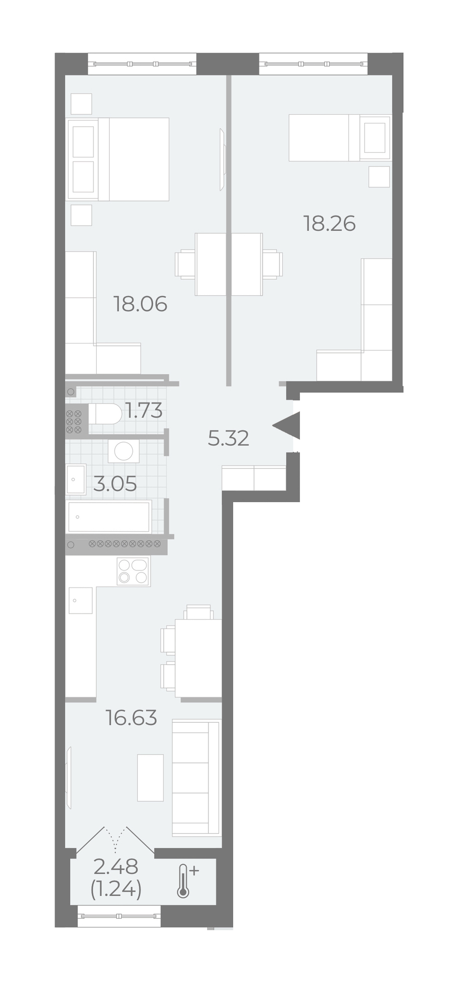 - Площадь кухни16,63 м2