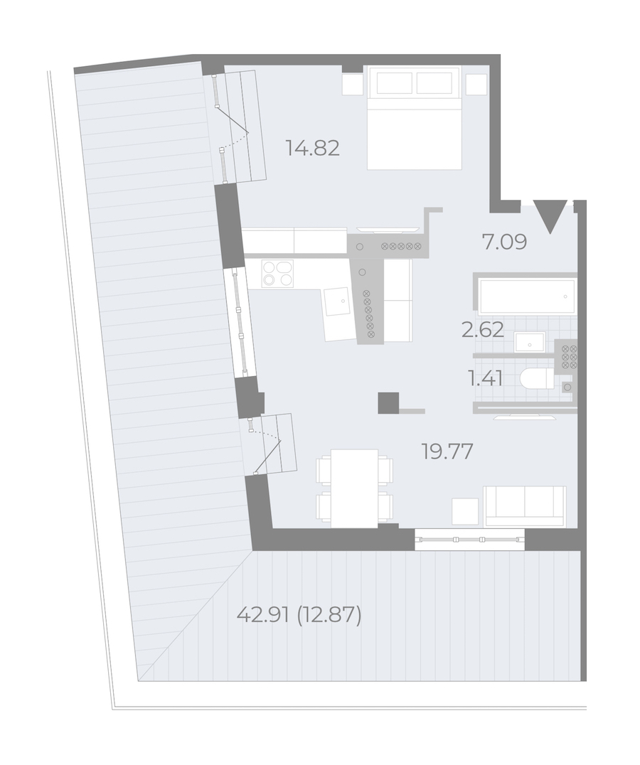 - Площадь кухни19,77 м2
