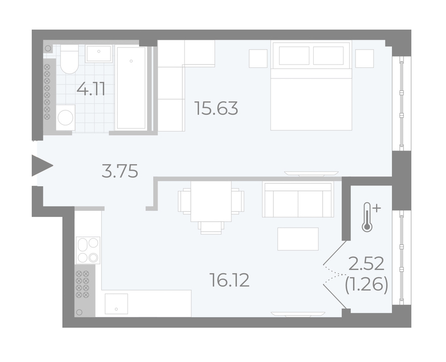 - Площадь40,4 м2