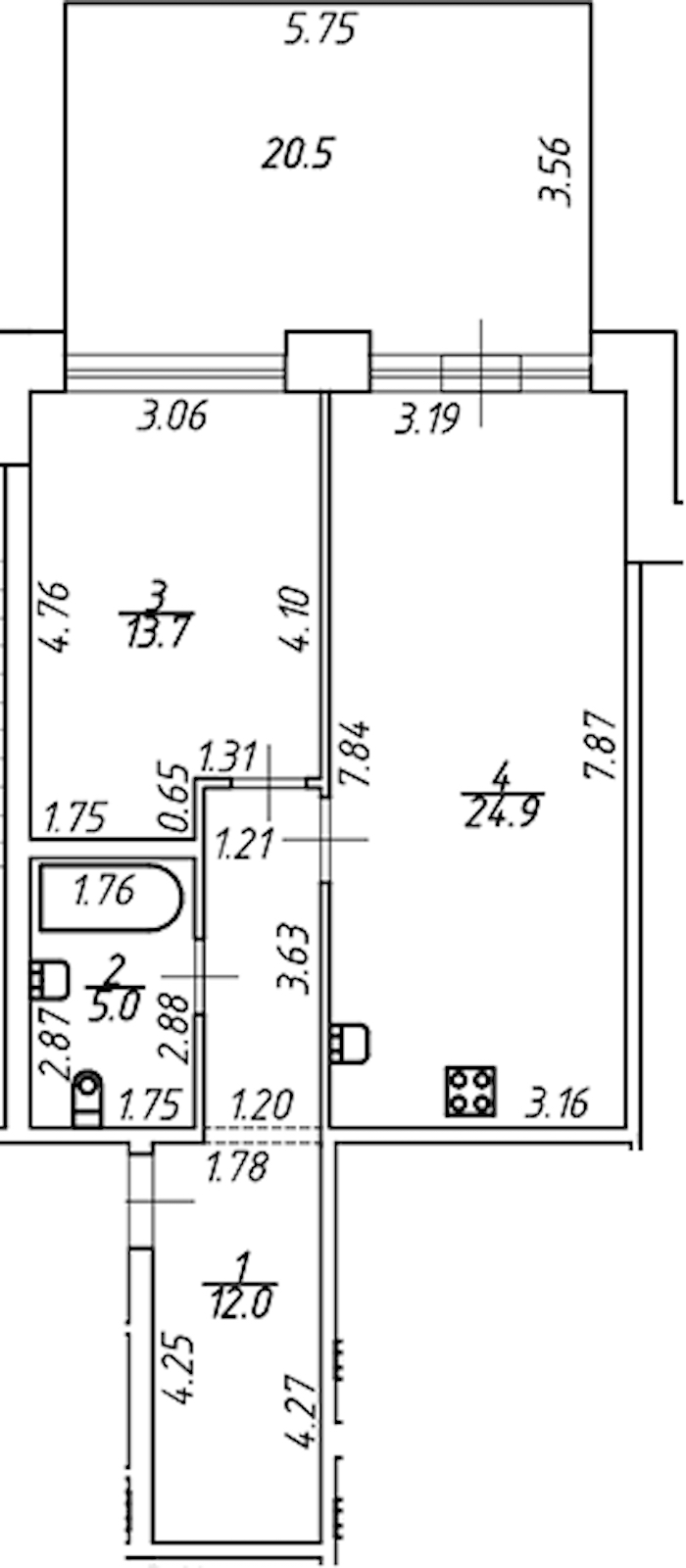 • Площадь кухни24,9 м2