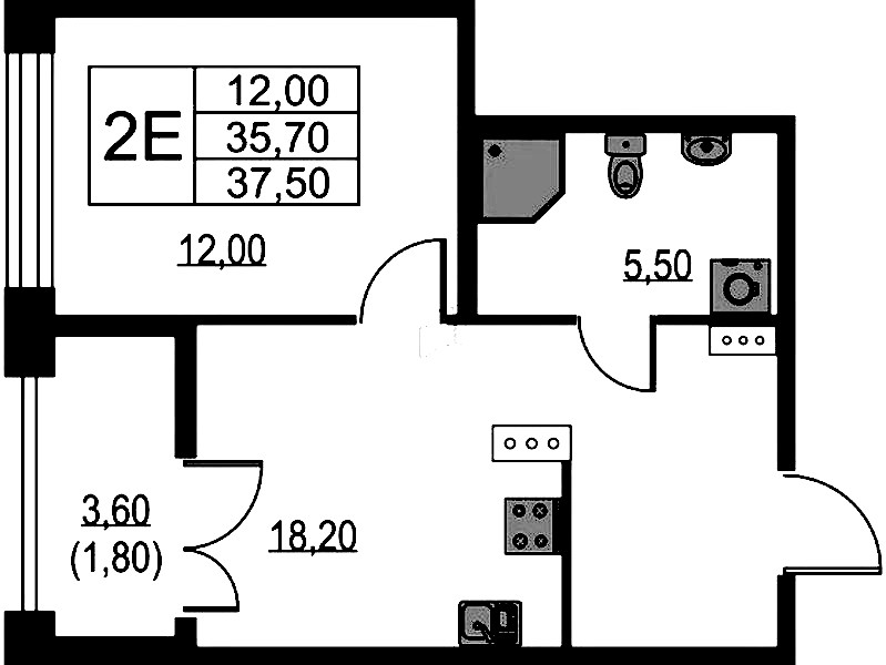 Однокомнатная квартира на 2-ом этаже 37,5 кв.м