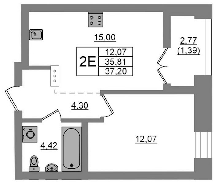 - Площадь37,2 м2