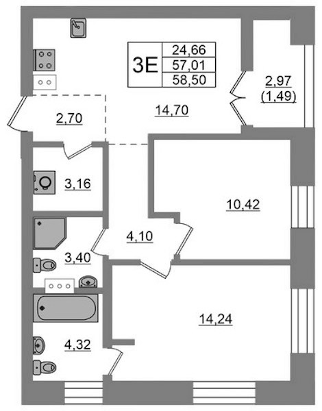 • Площадь58,5 м2