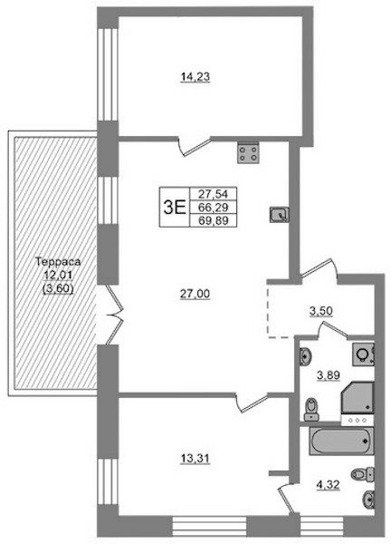 Двухкомнатная квартира на 2-ом этаже 69,89 кв.м