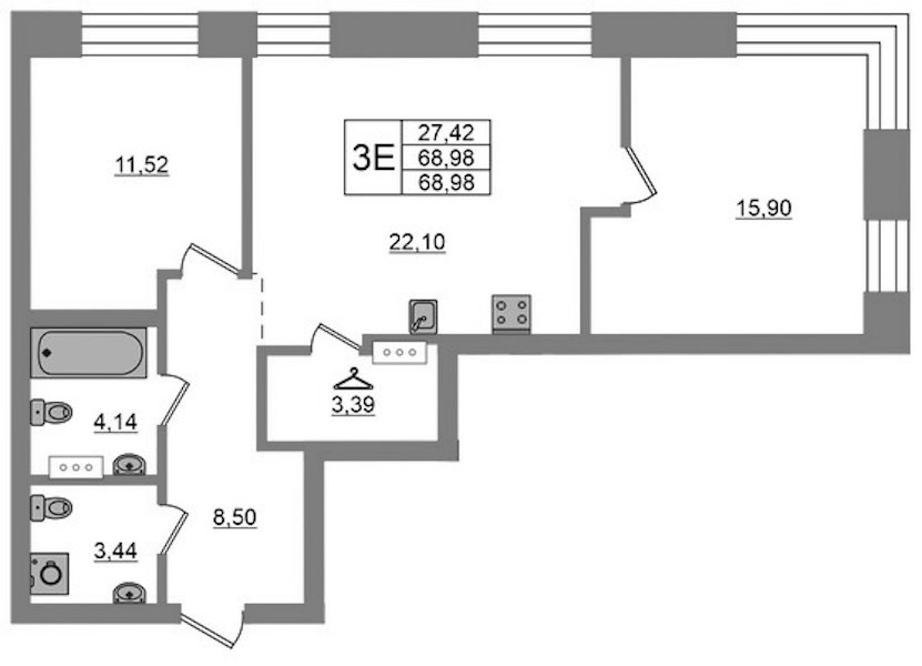Двухкомнатная квартира на 4-ом этаже 68,98 кв.м