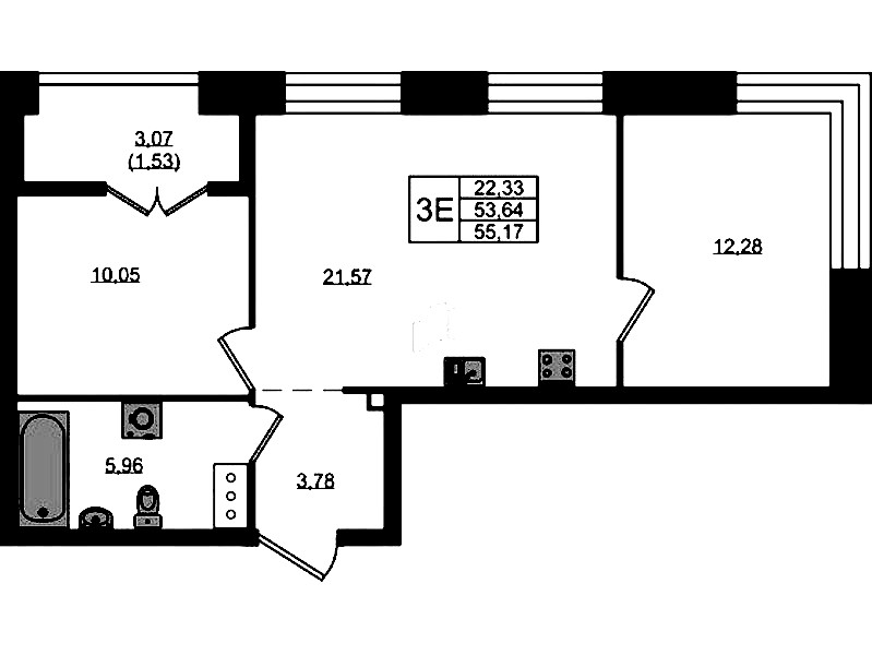 Двухкомнатная квартира на 7-ом этаже 57,17 кв.м