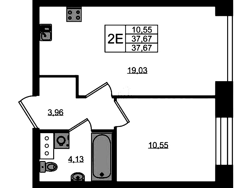 Однокомнатная квартира на 3-ем этаже 37,67 кв.м