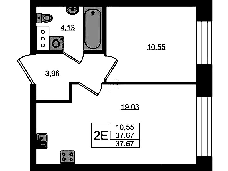 Однокомнатная квартира на 3-ем этаже 37,67 кв.м