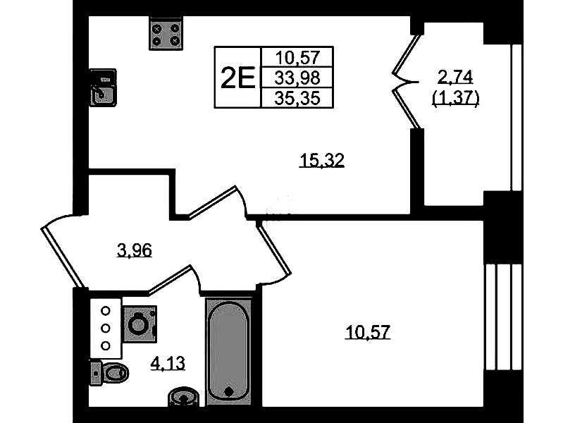 Однокомнатная квартира на 9-ом этаже 35,35 кв.м