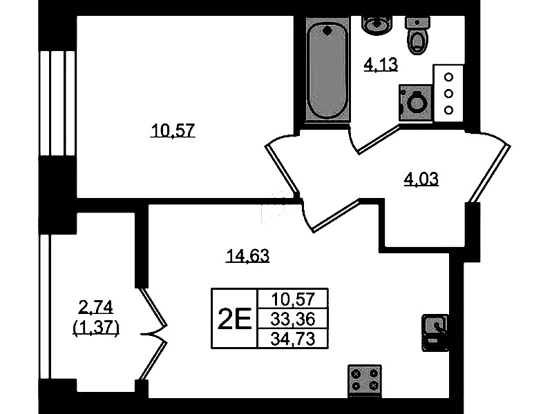 Однокомнатная квартира на 8-ом этаже 34,73 кв.м