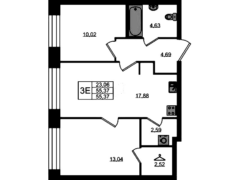 Двухкомнатная квартира на 2-ом этаже 55,37 кв.м
