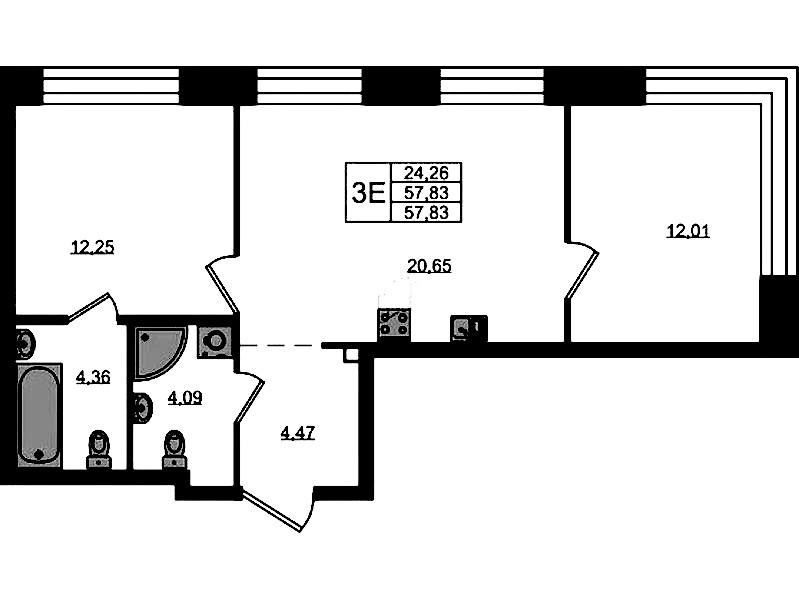 • Площадь57,83 м2