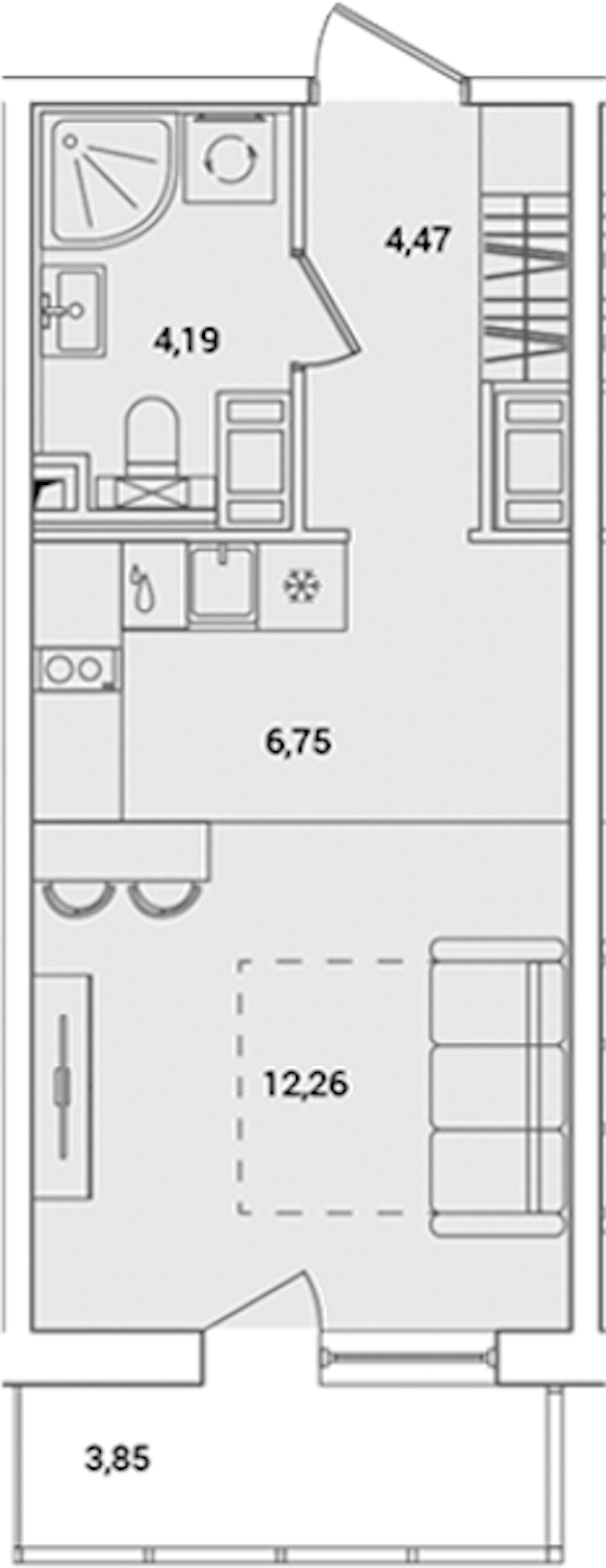Квартира-студия на 9-ом этаже 28,83 кв.м