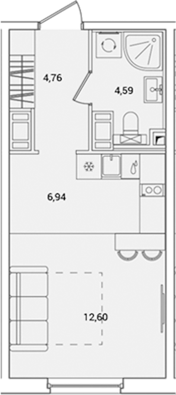 Квартира-студия на 12-ом этаже 28,49 кв.м