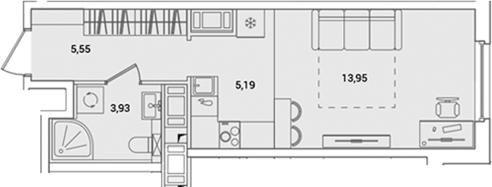 Квартира-студия на 15-ом этаже 28,62 кв.м
