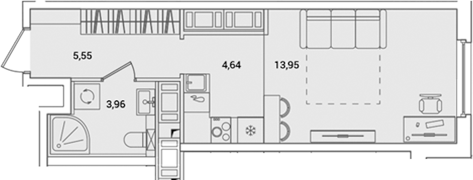 Квартира-студия на 22-ом этаже 28,1 кв.м