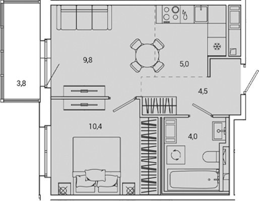 Однокомнатная квартира на 4-ом этаже 37,5 кв.м