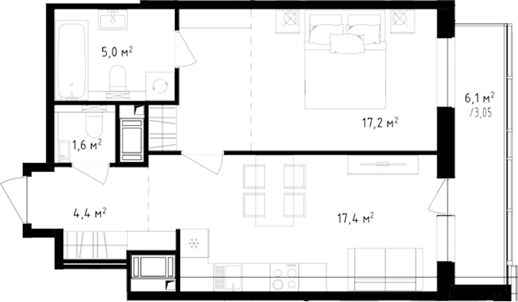 - Площадь кухни17,4 м2