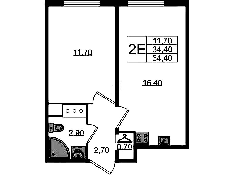 • Площадь34,4 м2