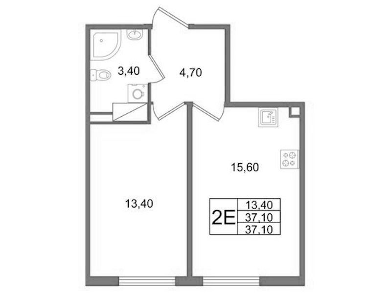 Однокомнатная квартира на 18-ом этаже 37,1 кв.м