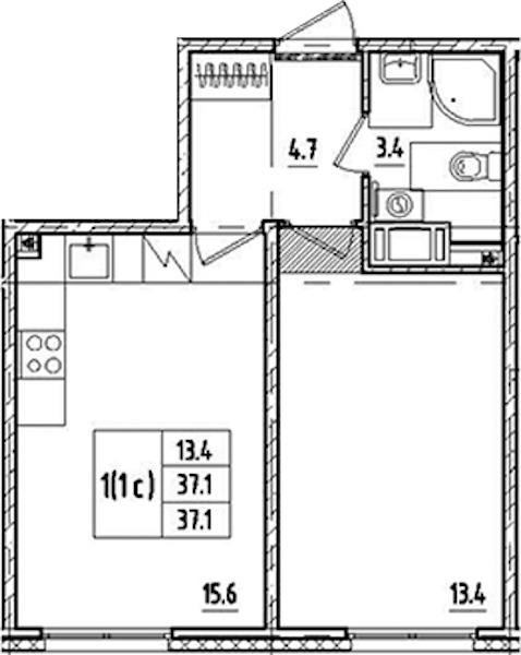 - Площадь37,1 м2