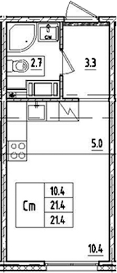 Квартира-студия на 10-ом этаже 21,4 кв.м