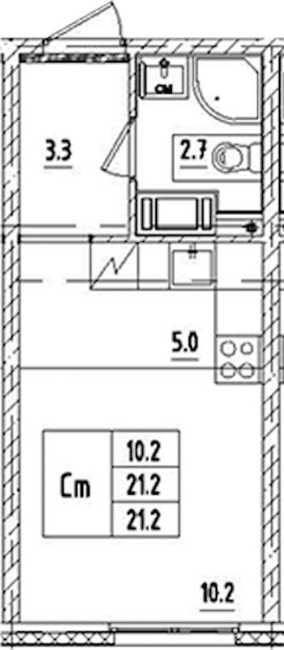 Квартира-студия на 8-ом этаже 21,2 кв.м