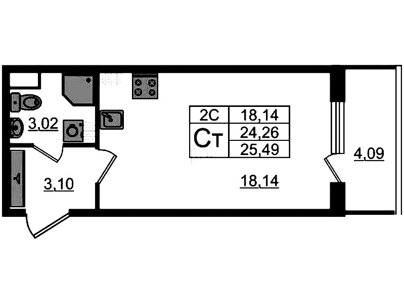 Квартира-студия на 5-ом этаже 24,26 кв.м