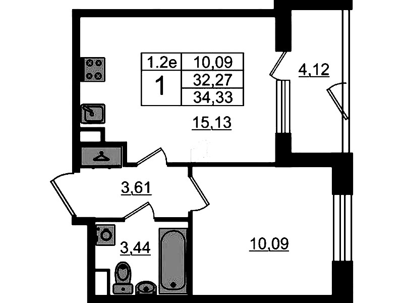 Однокомнатная квартира на 1-ом этаже 32,27 кв.м