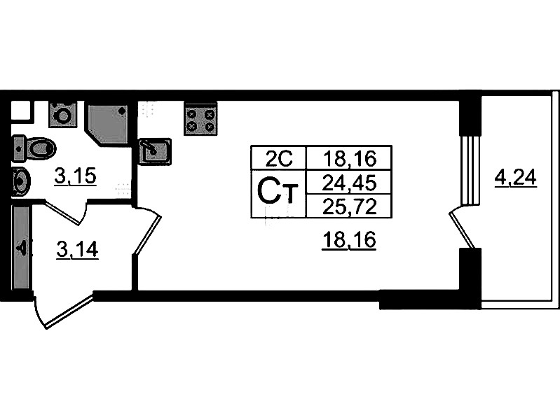 Квартира-студия на 3-ем этаже 24,45 кв.м