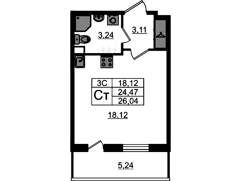 - Площадь24,47 м2