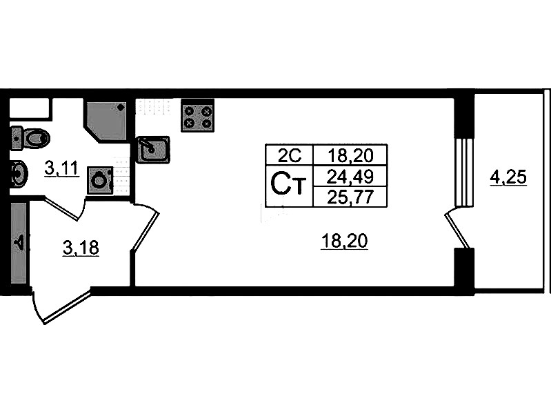 Квартира-студия на 5-ом этаже 24,49 кв.м