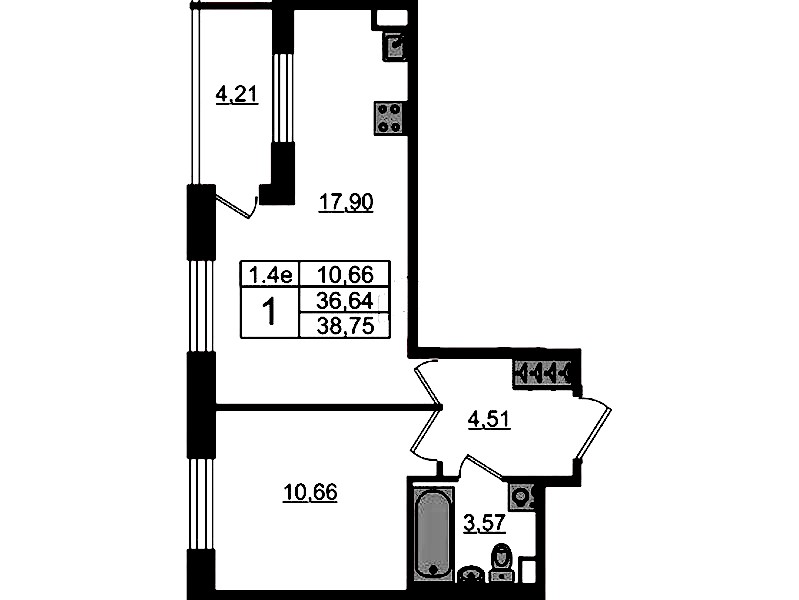 • Площадь36,64 м2