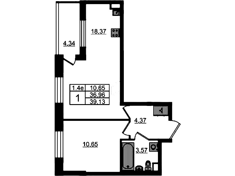 - Площадь36,96 м2