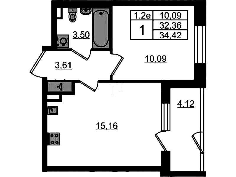 Однокомнатная квартира на 1-ом этаже 32,36 кв.м