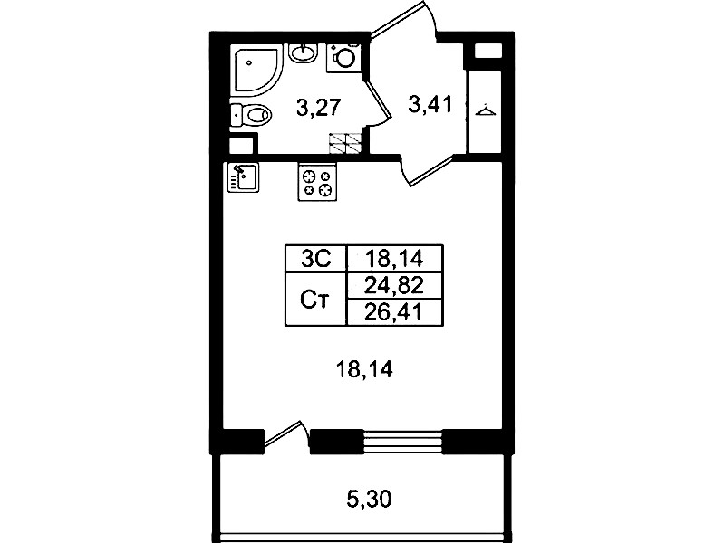 Квартира-студия на 4-ом этаже 24,82 кв.м