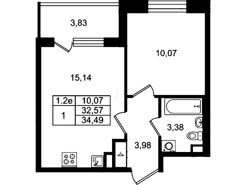 Однокомнатная квартира на 2-ом этаже 32,57 кв.м