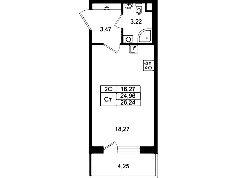 • Площадь24,96 м2