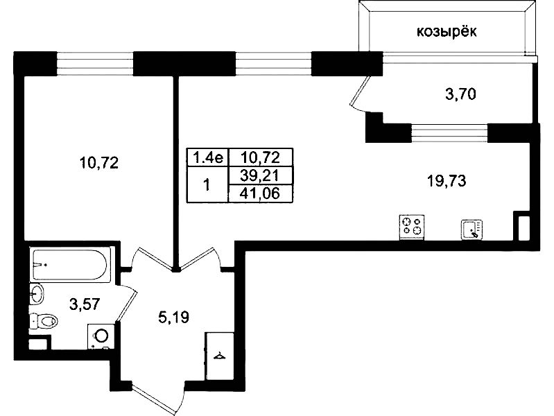 Однокомнатная квартира на 2-ом этаже 39,21 кв.м