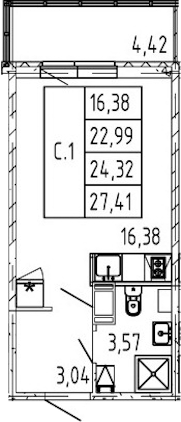 - Площадь22,99 м2