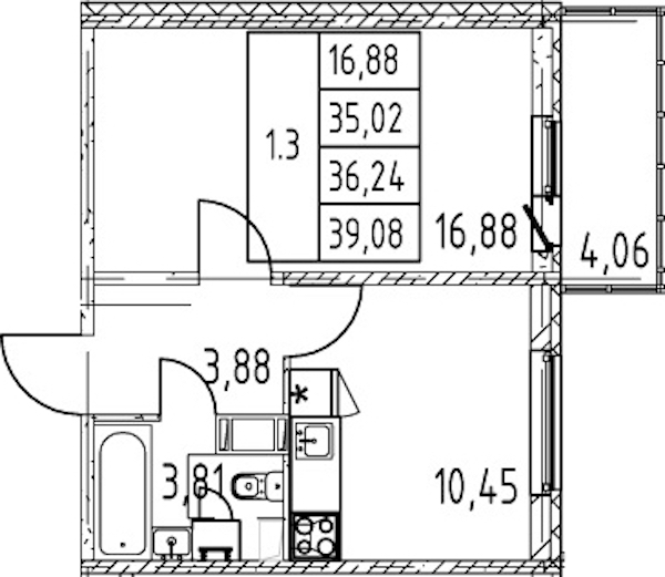 • Площадь35,02 м2