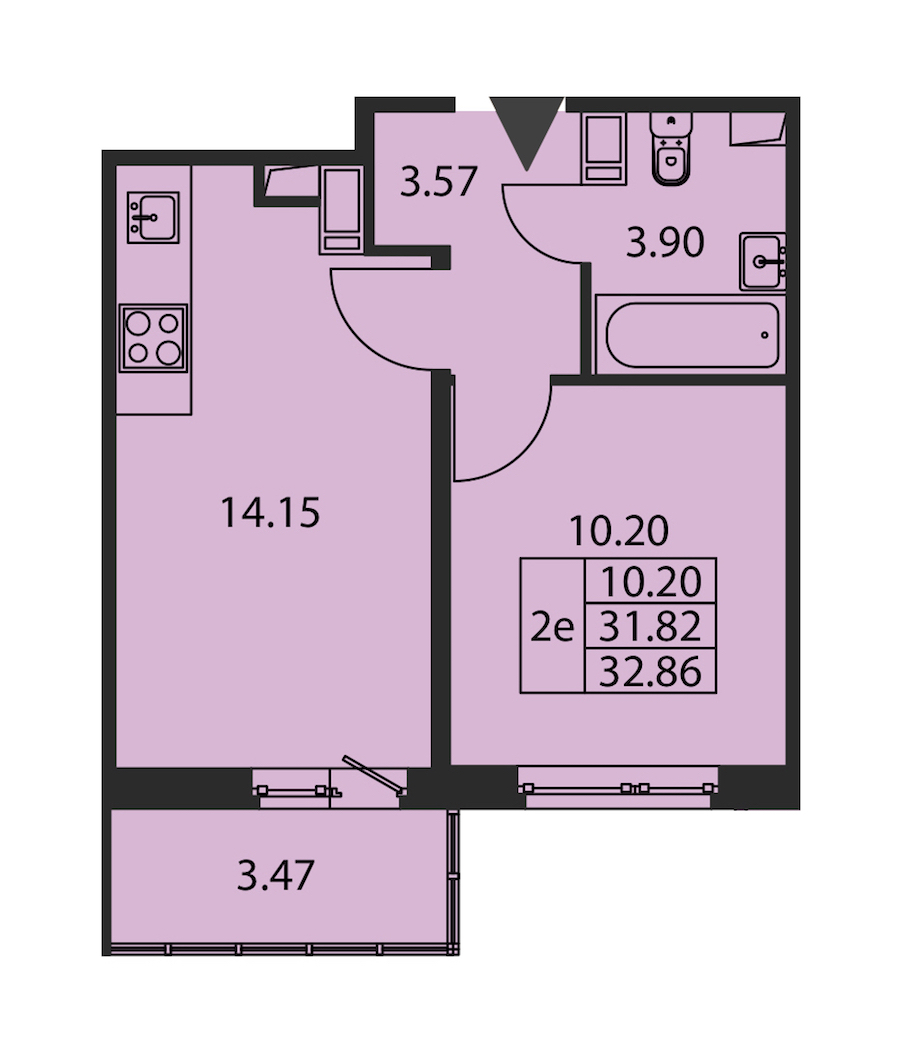• Площадь кухни14,15 м2