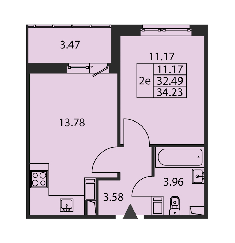 Однокомнатная квартира на 12-ом этаже 32,49 кв.м